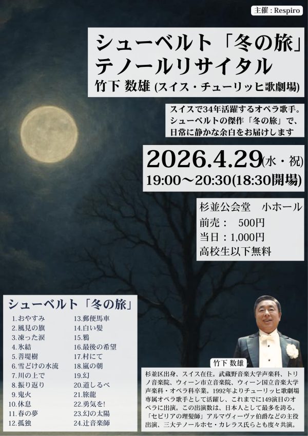 シューベルト「冬の旅」 テノールリサイタル 竹下 数雄